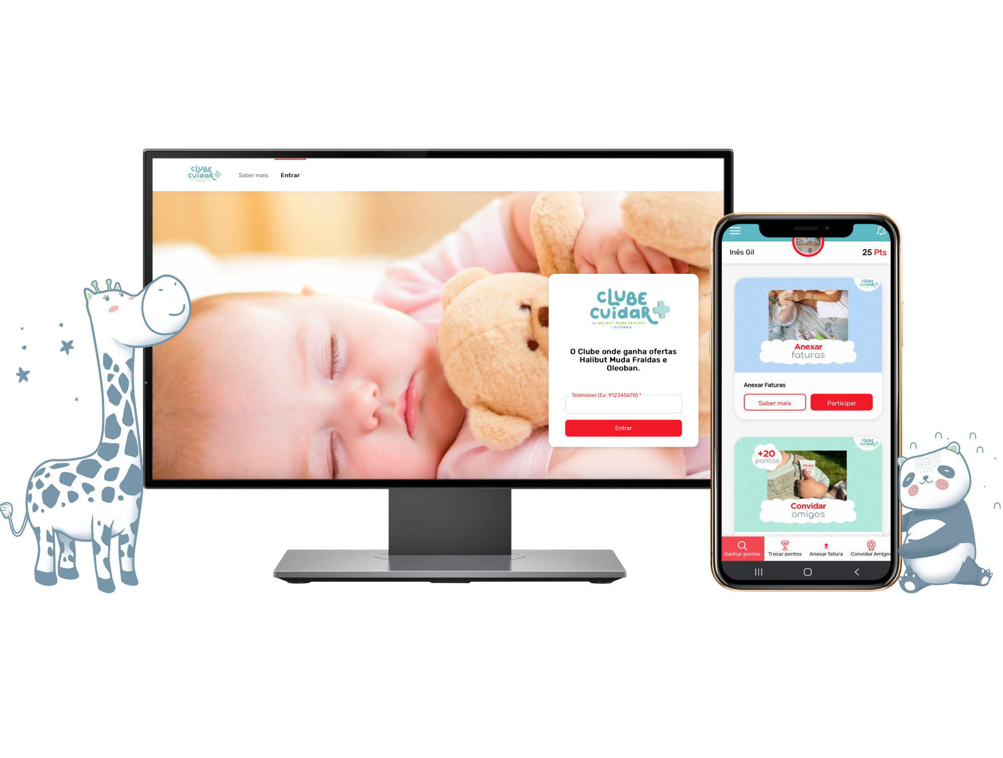Visite a página "Ganhar Pontos" do Clube Cuidar + e descubra questionários, desafios e campanhas especiais das marcas Halibut Muda Fraldas e Oleoban para ganhar pontos extra.